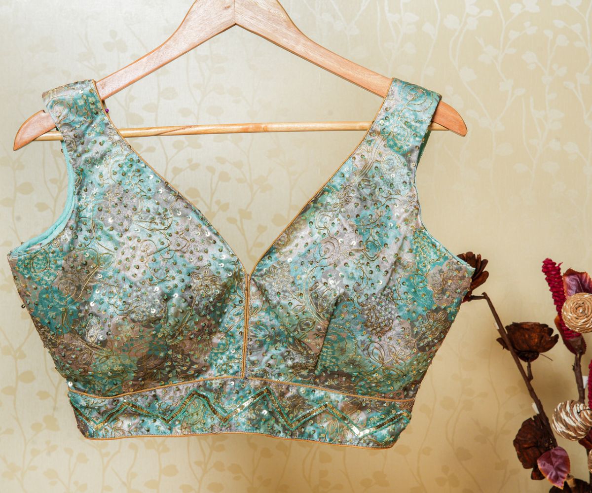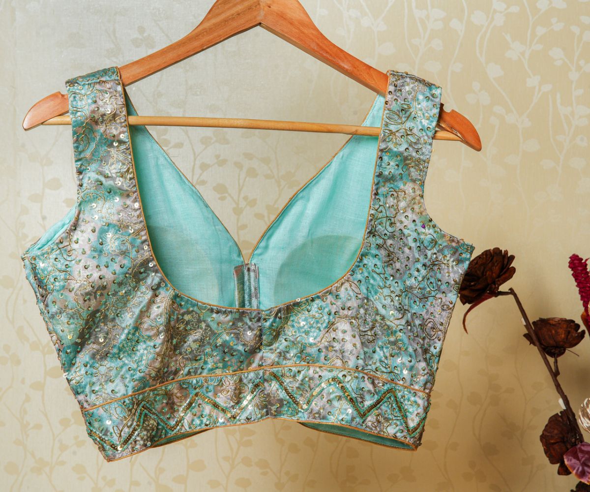 Made with beautiful chanderi printed silk. Hand work made with all sequin and zari . Deep front neck and perfectly made with lining. Back open in princess cut sleeve less with full of work